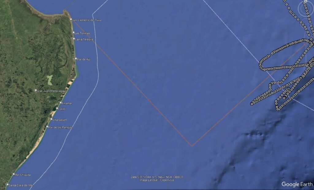 Si la fuente de sonido estaba activa y el buque estaba efectuando bombardeos acusticos, esto constutuye una operacion de exploracion ilegal en aguas argentinas