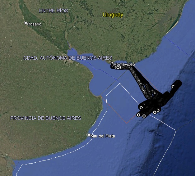 Reportes satelitales muestran que el día 26 de febrero de 2026 cruzó el límite lateral marítimo a Argentina por primera vez a las 02:55 GMT (23:55 del 25 de febrero hora local) regresando a las zona económica exclusiva uruguaya el mismo dia a las 09:13 GMT (06:13 local). Se registraron dos cruces más. El el dia 27 de febrero entre las 04:04 GMT y las 09:10 GMT y el ultimo el dia 2 de marzo entre las 20:14 y las 21:24 GMT