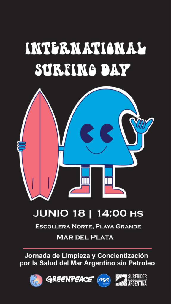 El 18 de Junio se celebrará en Mar del Plata el Interhational Surfing Day Argentina 2022. La Consigna internacional de esta acción es que las playas, son de todas las personas. Se realizará una limpieza de la Escollera Norte y una Jornada de Concientización por la Salud del Mar Argentino sin Petróleo en Playa Grande a partir de las 14hs. Punto de Reunión. Tranquera Guardavidas