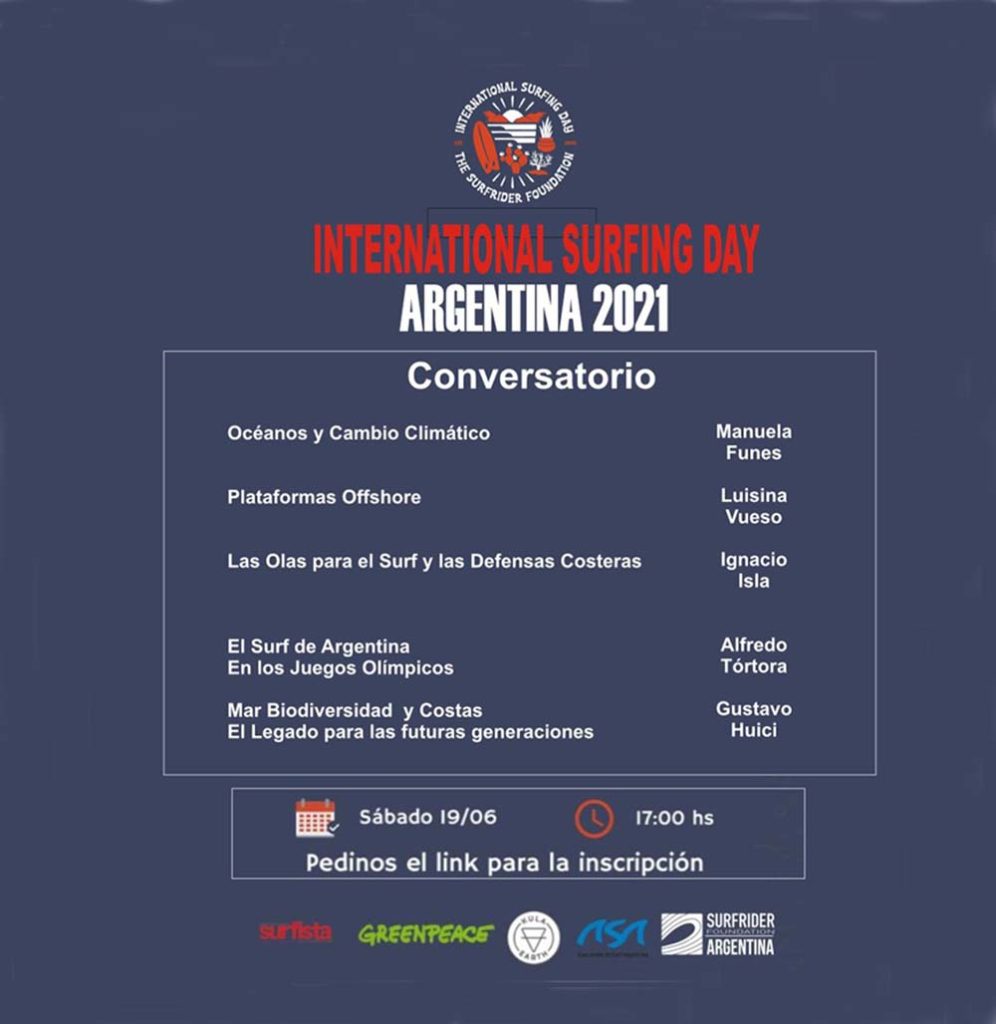 Hacemos extensiva a toda la comunidad la invitación a participar del conversatorio virtual a realizarse el sábado 19 de junio a la 17 horas, en el marco del International Surfing Day Argentina 2021.