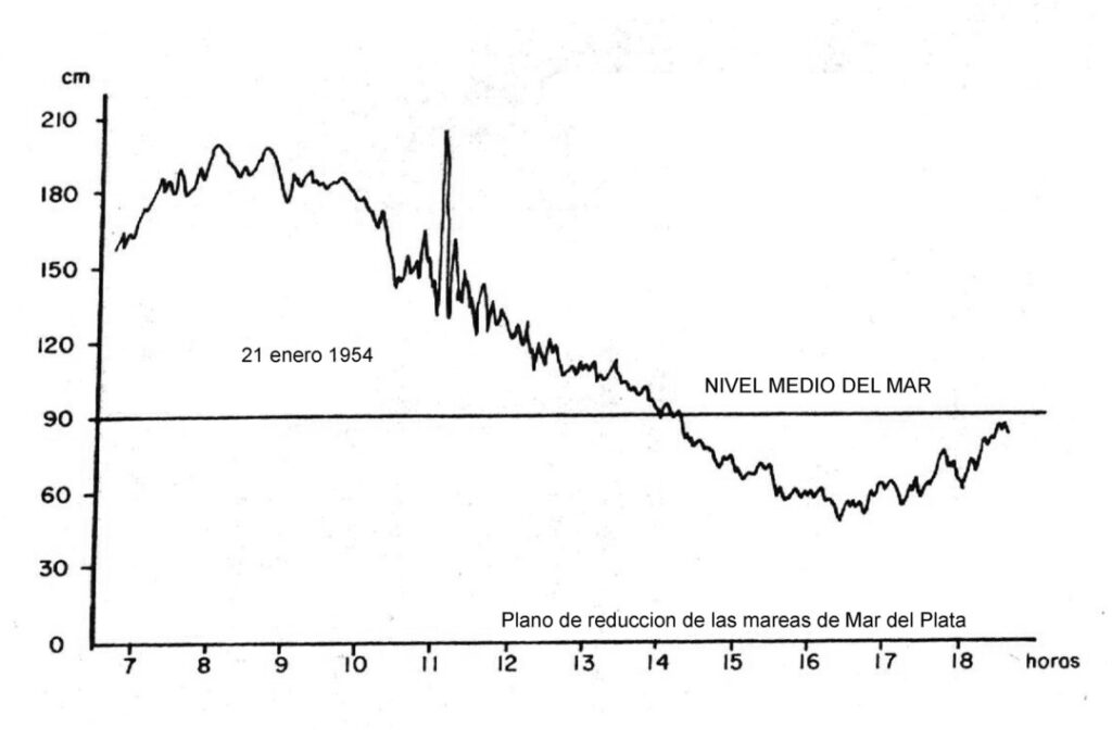 Registro de la marea en Mar del Plata del 21 de enero de 1954.